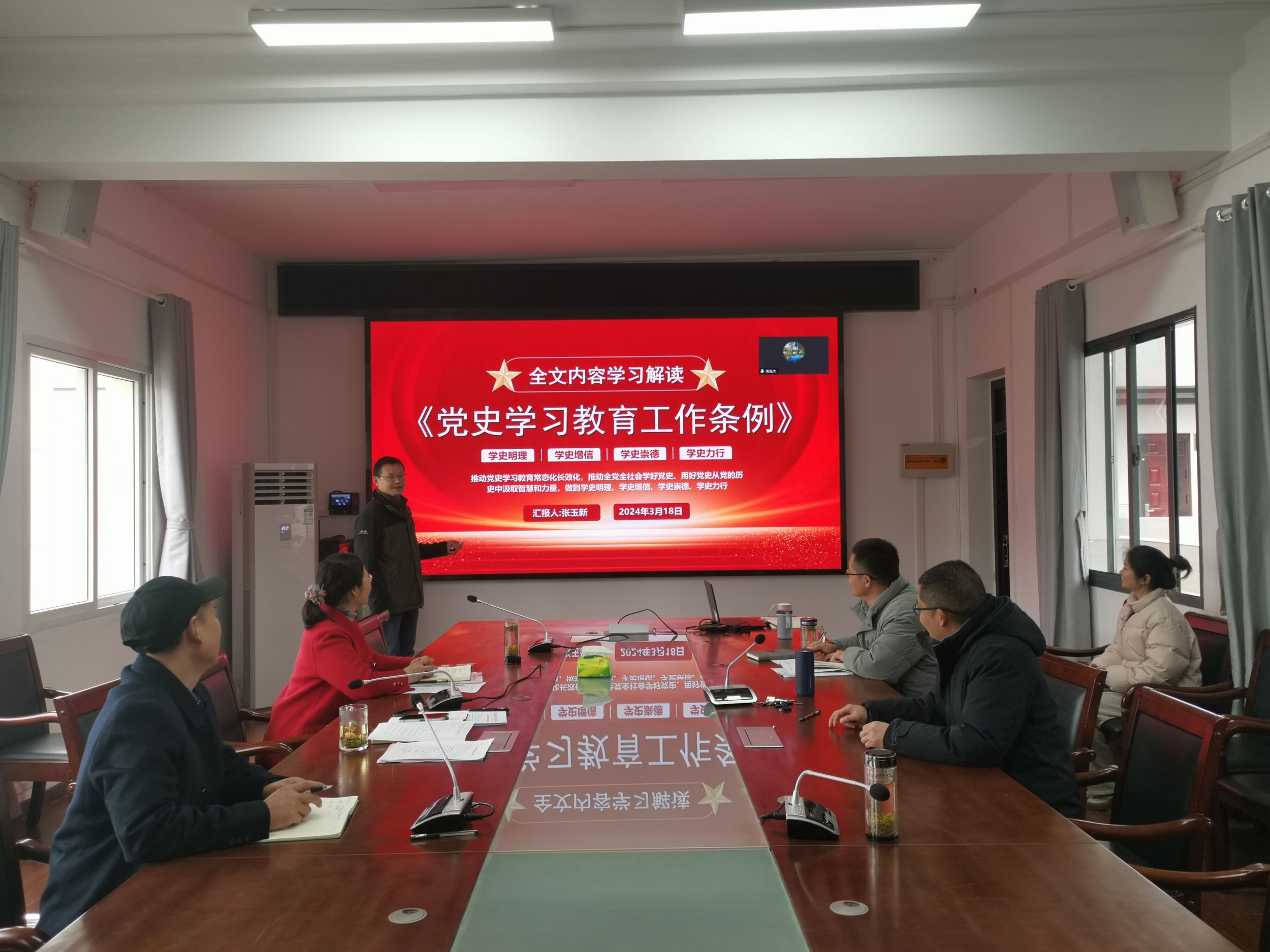 公司党委副书记、纪委书记张玉新通过PPT的形式,从《党史学习教育工作条例》出台背景及意义、重点内容、如何贯彻落实等角度全方位解读了《党史学习教育工作条例》。文件指出开展党史学习教育,充分发挥党史以史鉴今、资政育人的作用,是党和国家工作大局中的一件十分重要的工作。张玉新强调,要将学党史和悟思想相统一,利用好革命博物馆、纪念馆、党史馆、烈士纪念设施、革命旧址等红色资源,加强员工的革命传统教育、爱国主义教育、思想道德教育。赵红表示,《条例》以党内法规的形式规范了党史学习教育工作的主要任务、领导体制、党史学习教育的内容、保障和监督机制等,下一步要通过党支部“三会一课”等多种形式开展党史宣传、做好党史工作。