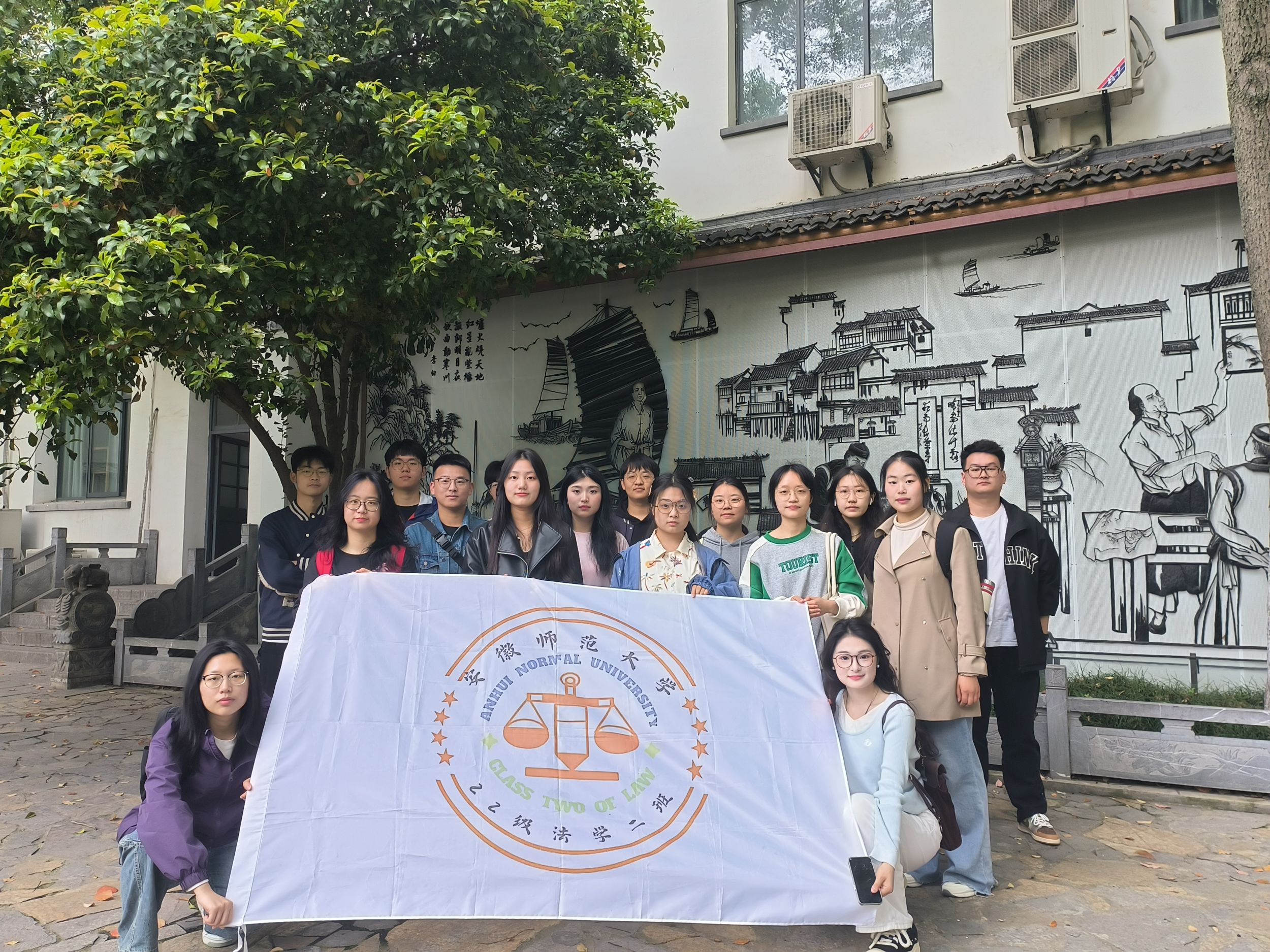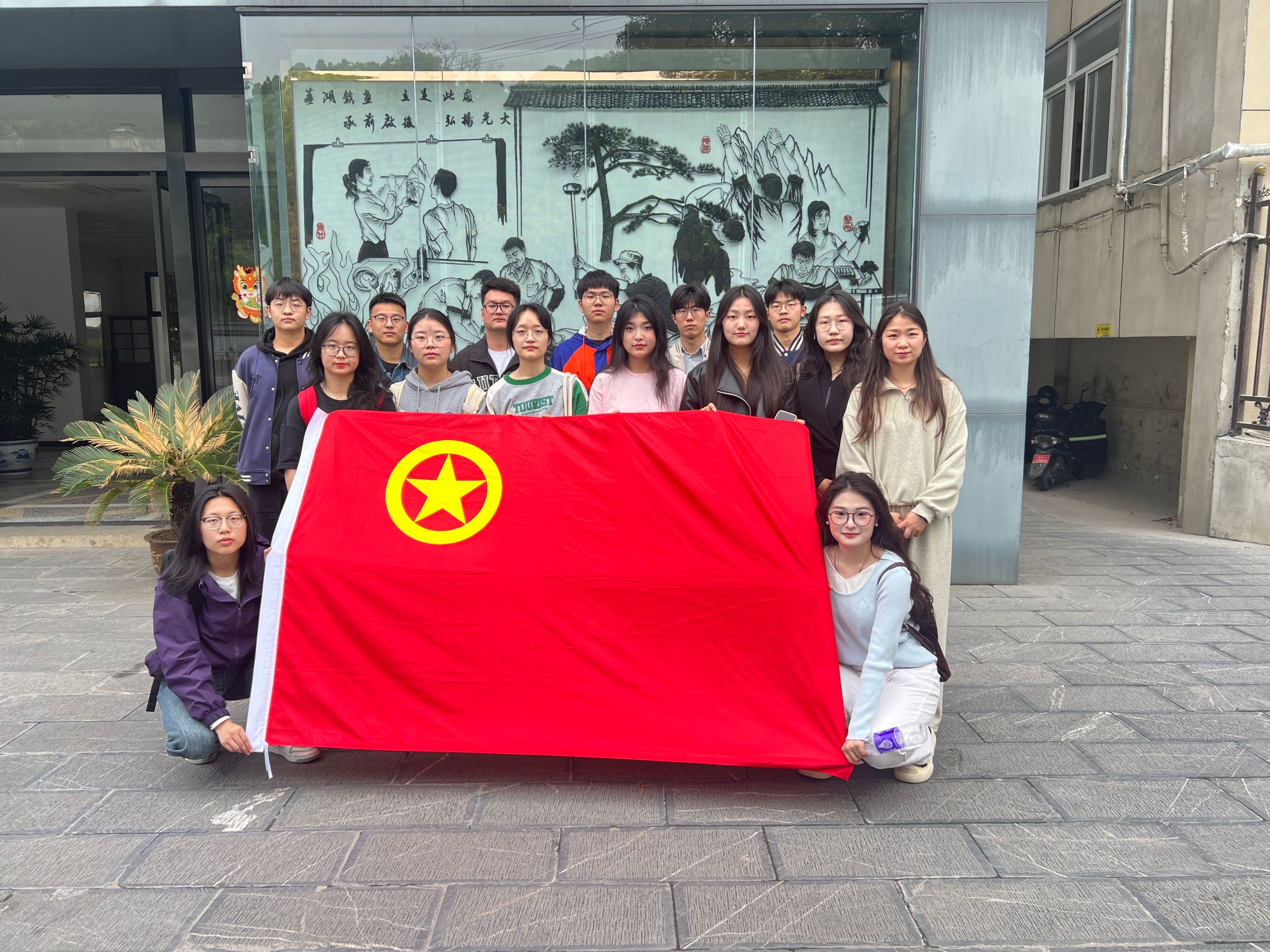 参观活动圆满结束,同学们在芜湖赭山铁画博物馆入口合影留念。