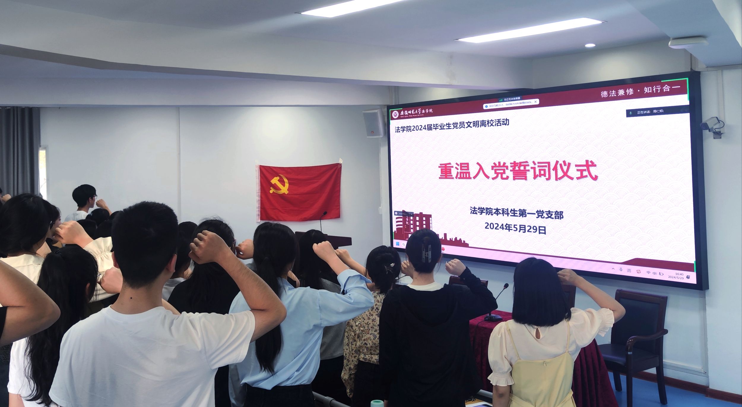 随后,由宣传委员张祺领誓,带领大家重温入党誓词。支部全体党员合影留念,欢送支部毕业生党员。最后,赵悦寄语祝福,希望全体党员进一步加强理论学习,强化党性修养,增强责任担当意识,希望毕业班党员不忘初心、牢记使命,祝大家前程似锦、未来可期。(图/李于茜 文/李迎春)
