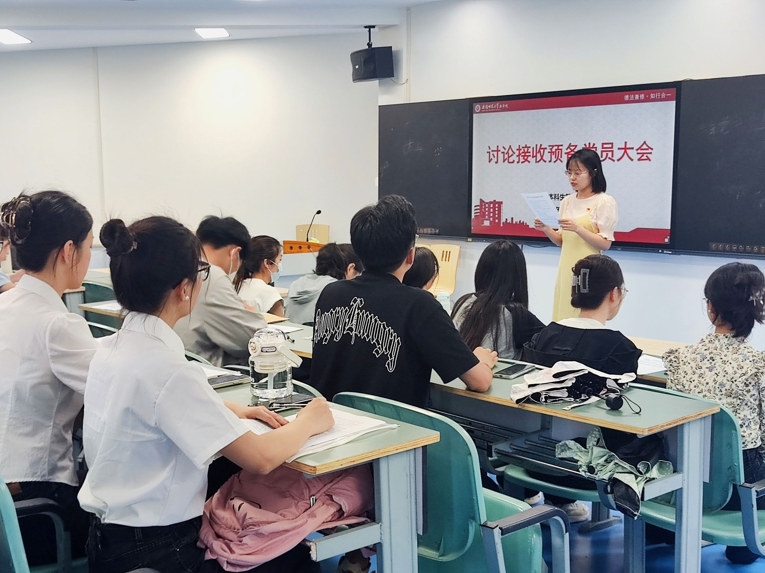 全体起立奏唱国歌后,赵悦报告出席会议的党员人数并宣布会议开始。大会通过陈雷雷同志为监票人、怀李元同志为计票人。根据党组织接收预备党员程序,刘辰子等14名发展对象依次宣读《入党志愿书》,汇报对党的认识、入党动机、本人履历及其他需向党组织说明的问题。随后,入党介绍人依次向大会介绍发展对象的入党动机、政治觉悟、思想品质以及学习、工作等现实表现,并对其能否入党充分表达意见。支部组织委员张文慧向大会报告发展对象的审查情况,同时与会党员对发展对象进行讨论,提出改进意见。发展对象对大会提出的意见表示虚心接受并做出改进承诺。经过大会讨论评议、当场无记名投票和计票,与会正式党员一致通过接收刘辰子等14名发展对象为预备党员的决议。