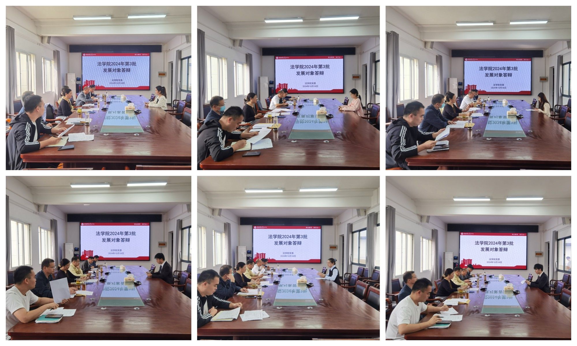 答辩现场采用必答题与选答题相结合的方式,综合考察答辩人对党内应知应会知识和时政热点的掌握情况,重点关注了解答辩人在实际学习生活中先锋模范作用的发挥。12名答辩人精心准备,较好地回答了党的基本知识,汇报了日常学习生活中的现实表现情况。