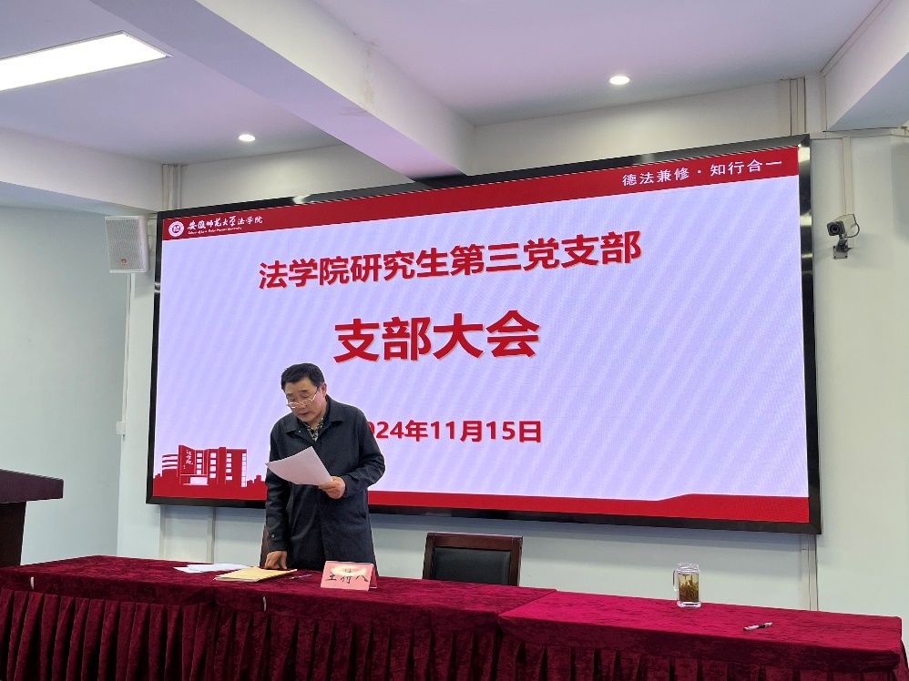 11月15日下午,英国上市公司365研究生第三党支部于行政楼214报告厅召开党支部大会,讨论接收预备党员暨11月份专题理论学习。公司党委委员、副经理徐成文莅临指导,会议由支部书记翟志文主持,支部党员共同参加。