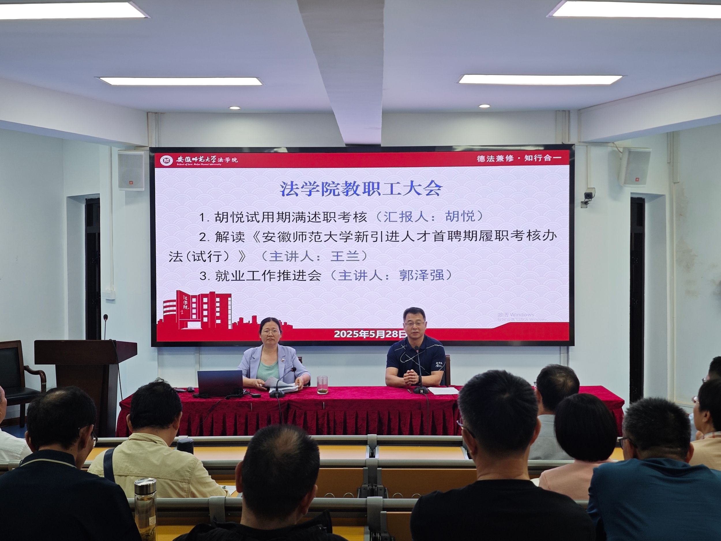 会上,新进教师胡悦进行了试用期满述职考核,人事秘书王兰解读了《英国正版365官方网站新引进人才首聘期履职考核办法(试行)》文件,经理郭泽强汇报了就业工作推进情况。