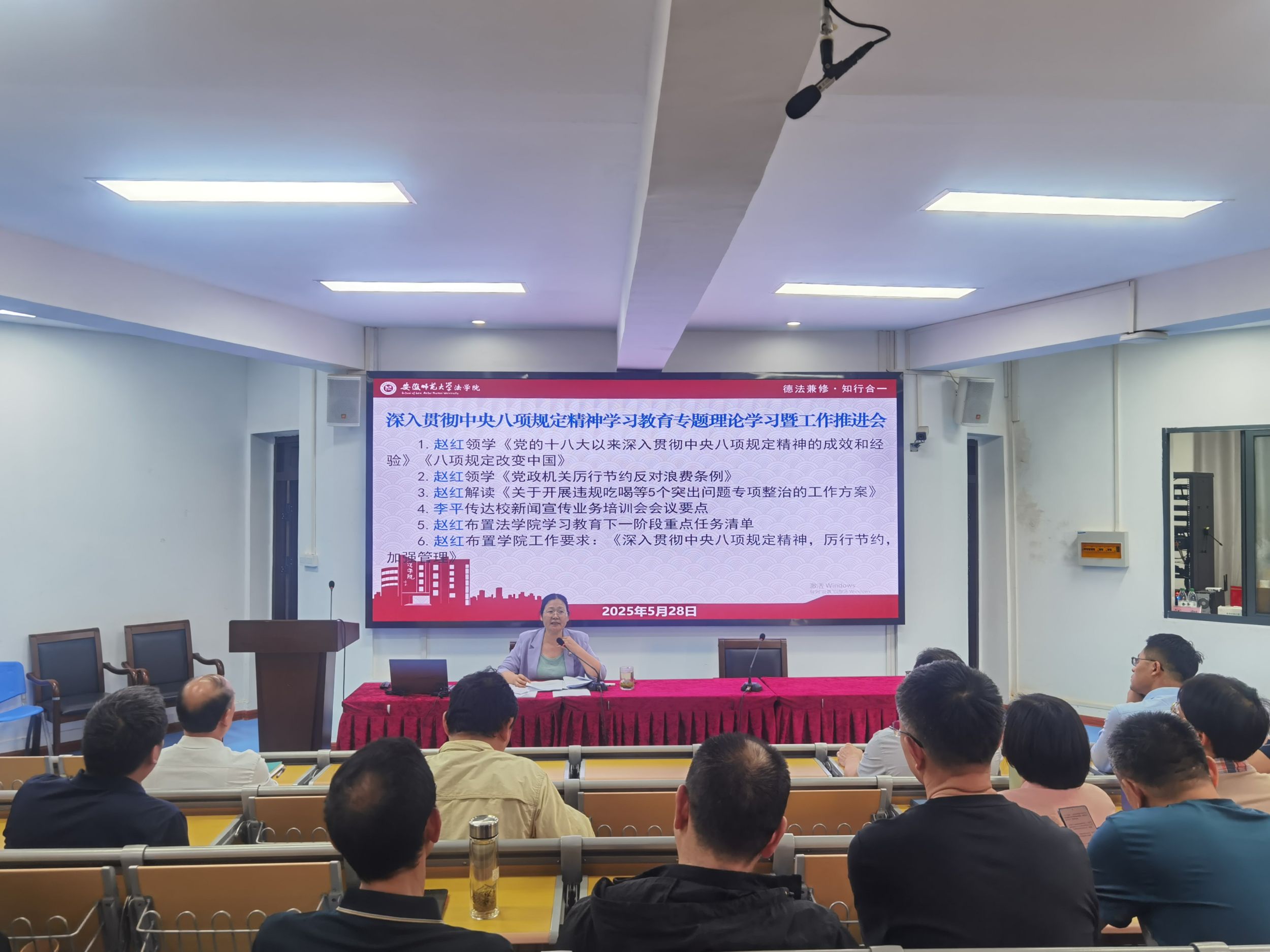 5月28日下午,英国上市公司365于214会议室召开深入贯彻中央八项规定精神学习教育专题理论学习暨工作推进会。会议由公司党委书记赵红主持,英国上市公司365全体教职工参会。