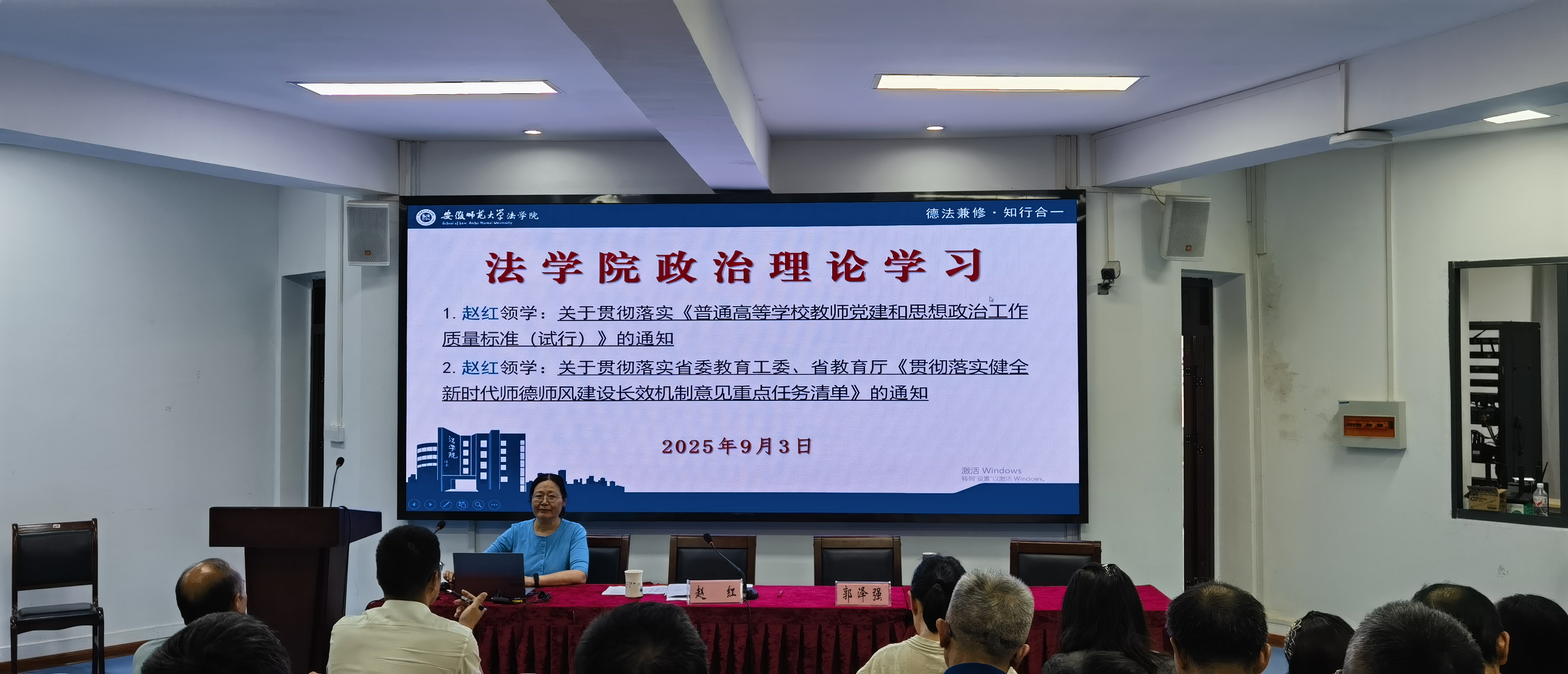 赵红领学了关于贯彻落实省委教育工委、省教育厅〈贯彻落实健全新时代师德师风建设长效机制意见重点任务清单的通知关于贯彻落实普通高等公司教师党建和思想政治工作质量标准(试行)的通知》。赵红强调了高校师德师风建设的重要性,结合实例分析了当前高校师德师风建设面临的挑战,号召每一位教育工作者自觉践行师德标准,贯彻落实《健全新时代师德师风建设长效机制意见重点任务清单》,共同营造风清气正、德法兼修、静心教书、潜心育人的良好校园生态和文化环境。