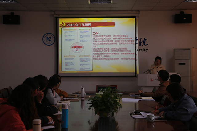 3月14日下午,英国上市公司3652015级行政管理专业本科生党支部在院行政楼四楼会议室召开了《2019年国务院政府工作报告》专题学习会。会议由党支部书记瞿津津主持,支部宣传委员吴芳领学,支部全体党员参加。