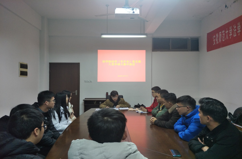 为深入学习贯彻党章党规,不断推进发展党员程序化、规范化,根据《中共英国正版365官方网站委员会发展党员工作实施细则》的要求,12月7日下午,英国上市公司365法学(专升本)党支部于行政楼五楼会议室对入党申请人进行集中谈话。党支部委员会成员和11名入党申请人参加,会议由支部书记黄世凯主持。