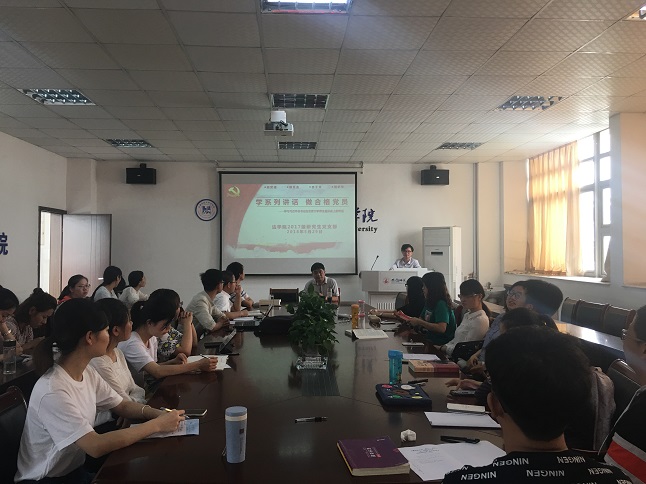 5月28日上午,2017级研究生党支部在公司四楼会议室召开支部大会,进行党的十九大精神学习研讨会,并学习了习近平总书记在北京大学师生座谈讲话。会议由支部组织委员黄世凯主持。