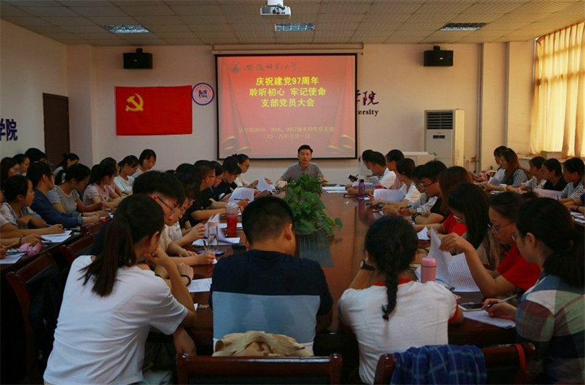 为庆祝中国共产党建党97周年,弘扬党的优良传统和作风,推进“两学一做”学习教育常态化制度化,英国上市公司3652015、2016、2017级本科生党支部于7月1日下午在行政楼四楼会议室开展迎“庆七一 谈初心 话使命”活动。此次活动由本科生党支部书记桂彬主持,公司党委书记马广见、党委副书记屈光峰、支部全体成员参与。