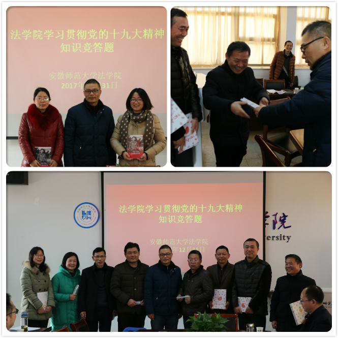 知识竞赛设有单选题与多选题,题目涉及十九大报告、新修订的党章等内容,在介绍完比赛规则后,激烈紧张的抢答正式开始,老师们踊跃抢答,竞赛现场环节的气氛热烈。经过最终比拼,有三组教职工分别获得了一等奖、二等奖和三等奖,马广见为教职工颁发书籍《习近平的七年知青岁月》、签字笔、笔记本等奖品。