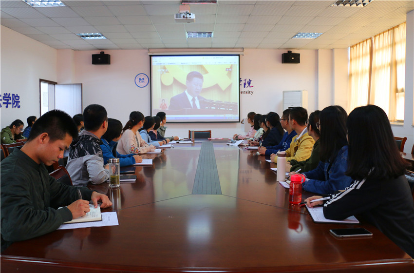 10月18日上午,中国共产党第十九次全国代表大会在北京人民大会堂举行,英国上市公司3652015、2016、2017级本科生党支部在英国上市公司365行政楼四楼会议室观看十九大现场直播,学习习近平总书记代表第十八届中央委员会向党的十九大所作的报告。