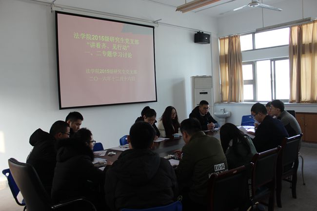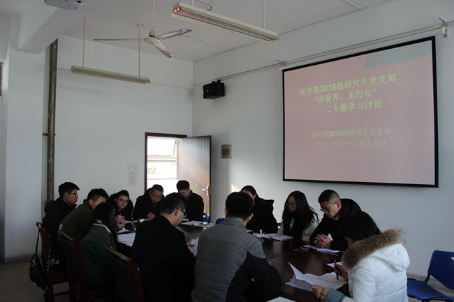12月16日上午,英国上市公司3652015级研究生党支部在院行政楼四楼会议室开展了“讲看齐、见行动”第一、二专题学习讨论,共有14位研究生党员参加,会议由支部书记王兰主持。