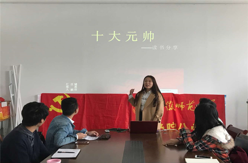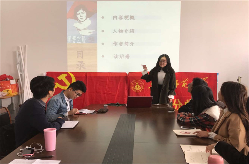 同学们经过阅读《林海雪原》、《苦菜花》、《十大元帅》、《钢铁是怎样炼成的》等红色经典书籍,皆深有感触,纷纷通过PPT汇报方式发表自己的阅读感悟。郑卓首先为大家介绍了《钢铁是怎样炼成的》,将书籍内容与日常学习生活结合,赞扬了保尔无私奉献、脚踏实地、埋头苦干的精神;我们在学习中也应拥有这种命不息,奋斗不止的毅力。杜靖雯则为大家分享了《青春之歌》的感悟,《青春之歌》通过描写了以林道静为主要人物的一批进步青年在那个时代,从“九一八”到“一二九”运动那个背景下的年轻人的革命精神。杜靖雯提到,“作为当代老员工,我们应当追逐理想,坚定信念,不辜负我们的青春时光!”之后,邹传奇、汤元帅等人也为大家分享了《苦菜花》、《十大元帅》等红色经典阅读书籍。同学们互相交流讨论自己的读书心得。