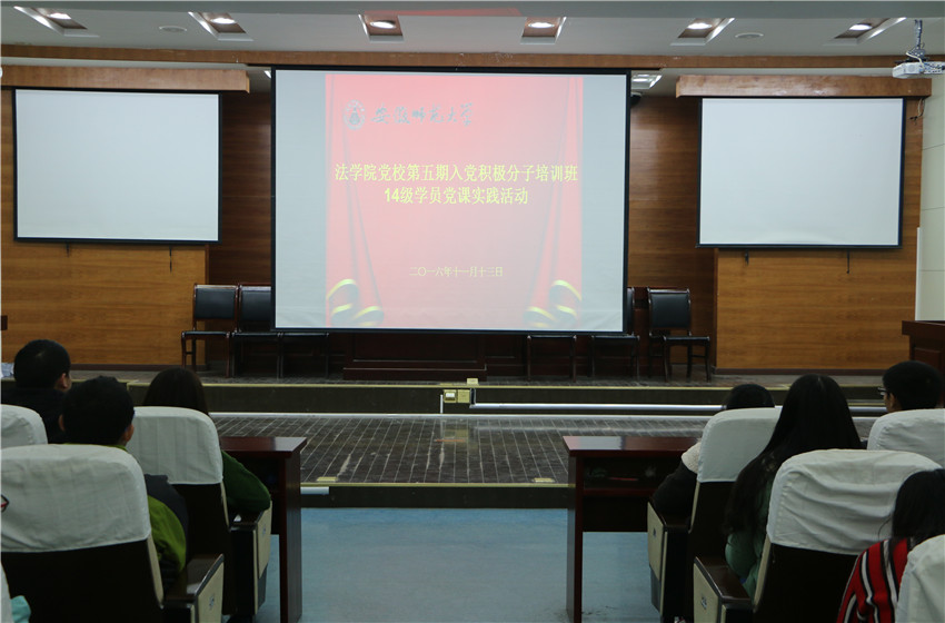 11月13日晚,14级入党积极分子在模拟法庭开展党课实践活动——集体观看《建党伟业》,通过影响传递青年声音,回顾历史吹响追忆号角。