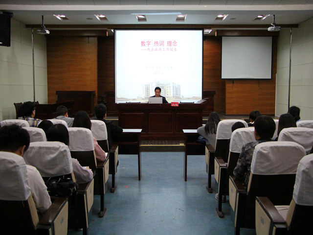 4月13日晚7点30,英国上市公司365第三期党员培训第六讲“数字热词理念——两会政府工作报告”在模拟法庭开讲。公司党委宣传部部长李裕鑫受邀担任主讲人,全体培训班党员到场聆听。