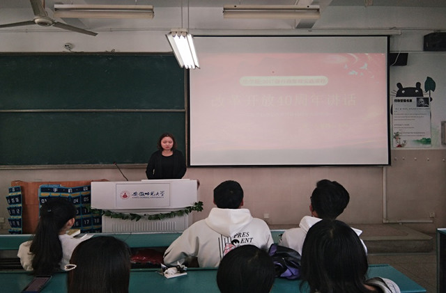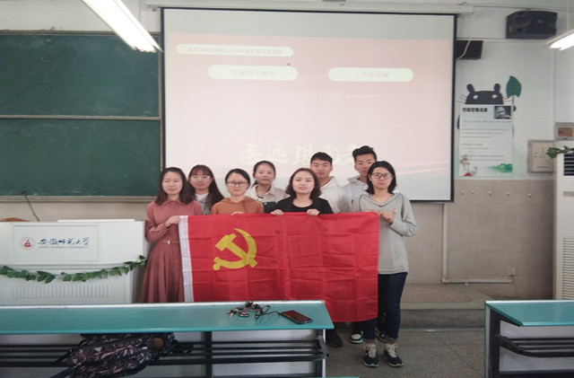 会议伊始,苏金美简单阐述了本次活动主要包括学习习近平改革开放四十周年讲话、观看红色历史革命电影《建党伟业》、学习党章等内容,并呼吁大家不仅要组织上入党,更要做到思想上入党。在学习讲话过程中,她全面回顾了改革开放40年的光辉历程,并深刻总结了改革开放的伟大成就和宝贵经验,帮助同学们更加深刻理解新时代坚持和发展中国特色社会主义有着极为重要的意义。同学们感受到了新时代下中国前进的脚步,更加坚定了自己为党国事业做贡献的决心。会末,同学们积极表达了自己对此次活动的感悟与看法,并与党旗一起合影留念。