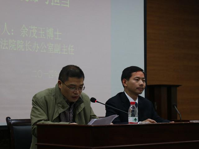 余博士的报告内容既有中央精神的传达,也有自己的思考。报告提纲挈领、深入浅出,具有很强的指导性、针对性和启发性,既有理论上的讲解,有益于师生深刻理解十八届四中全会精髓,又有实践经验介绍,便于大家结合实际,把会议精神落实到学习工作中。报告对于老师们的教学科研有很强的指导意义,对于同学们学习法学、将来从事司法工作很有鼓舞。(文/刘隆隆 图/王祚远)