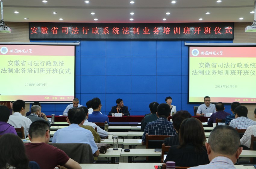 金秋十月,丹桂飘香。2018年10月8日至12日,根据安徽省司法厅工作安排,公司圆满完成了全省司法行政系统法制业务培训任务。来自全省各市、省直管县司法局分管法制工作领导及法制工作机构负责人,省监狱管理局、省戒毒管理局、警官公司及省直监狱、戒毒单位法制工作机构负责人等90名学员参加了此次培训。