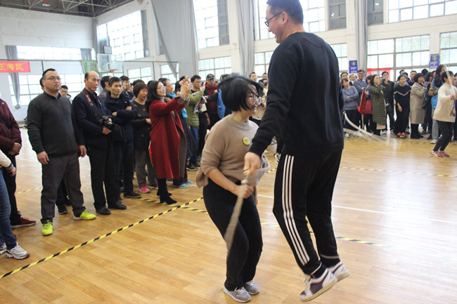 此活动由“和谐师大抬新娘”“双人合力齐跳绳”两部分组成,来自26个不同公司与部门的男女混合代表队参与并圆满完成了活动。比赛活动过程轻松活泼,但又竞争激烈,各代表队“八仙过海,各显神通”,团结合作,不遗余力,将竞争与团结的结合展示得淋漓尽致。比赛虽然热火朝天,但也有令人开心的一面,老师们一改平日里的严肃,鼓足干劲,奋力投身活动中,让人不禁为之喝彩和鼓掌。在这“三八”妇女节来临之际,为教职工平日里繁忙沉重的工作带来了一抹色彩,让老师们享受运动带来的健康与快乐。
