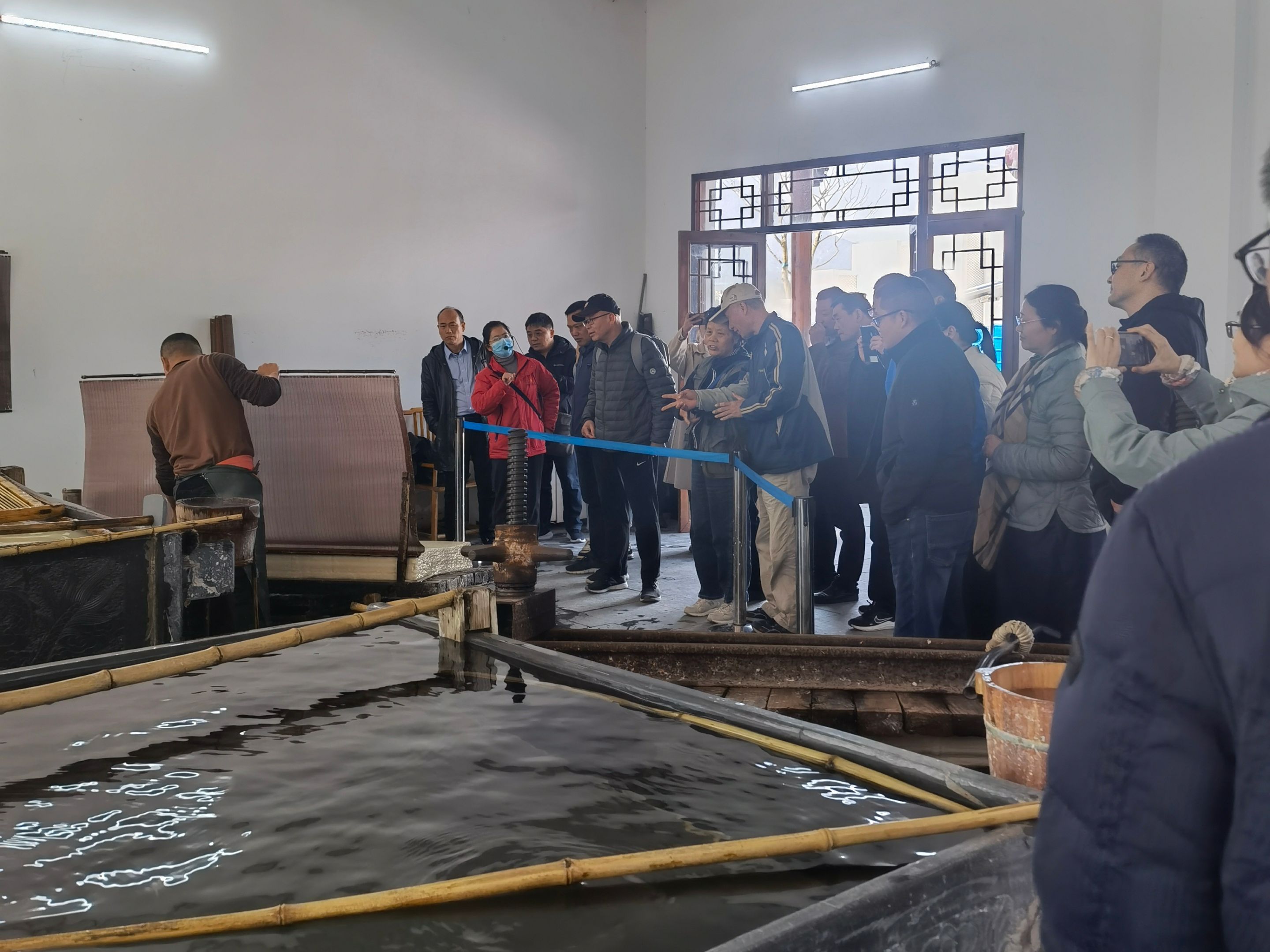 本次踏青活动的行程安排丰富充实。活动伊始,大家来到全国首个系统性综合宣纸博物馆——宣纸文化园。在这里,大家通过讲解员详细的讲解了解到古法宣纸工艺的制作过程,亲身体验了纸、墨、笔、砚、扇、纸帘的制作。在此过程中,大家深深感受到宣纸的魅力。除此之外,现今规模最大、保存较为完整的明清古村落——查济也吸引着大家前去参观。这是一座要追溯到唐代的中国历史文化名村,大家游览了村中尚存的古代建筑。其中元代建造的“德公厅屋”、明代的“二甲祠”与“爱日堂”等建筑最为完整,其精致的结构、浑圆细腻的雕刻使大家惊叹不已。最后,大家欣赏了《赠汪伦》中的“桃花潭”的绝美风光。桃花潭水清澈晶莹,潭两岸还有踏歌岸阁、谪仙楼、钓隐台等优美景点。大家一边游览一边感叹这翠峦碧水的画面,同时也了解了许多当地的历史。