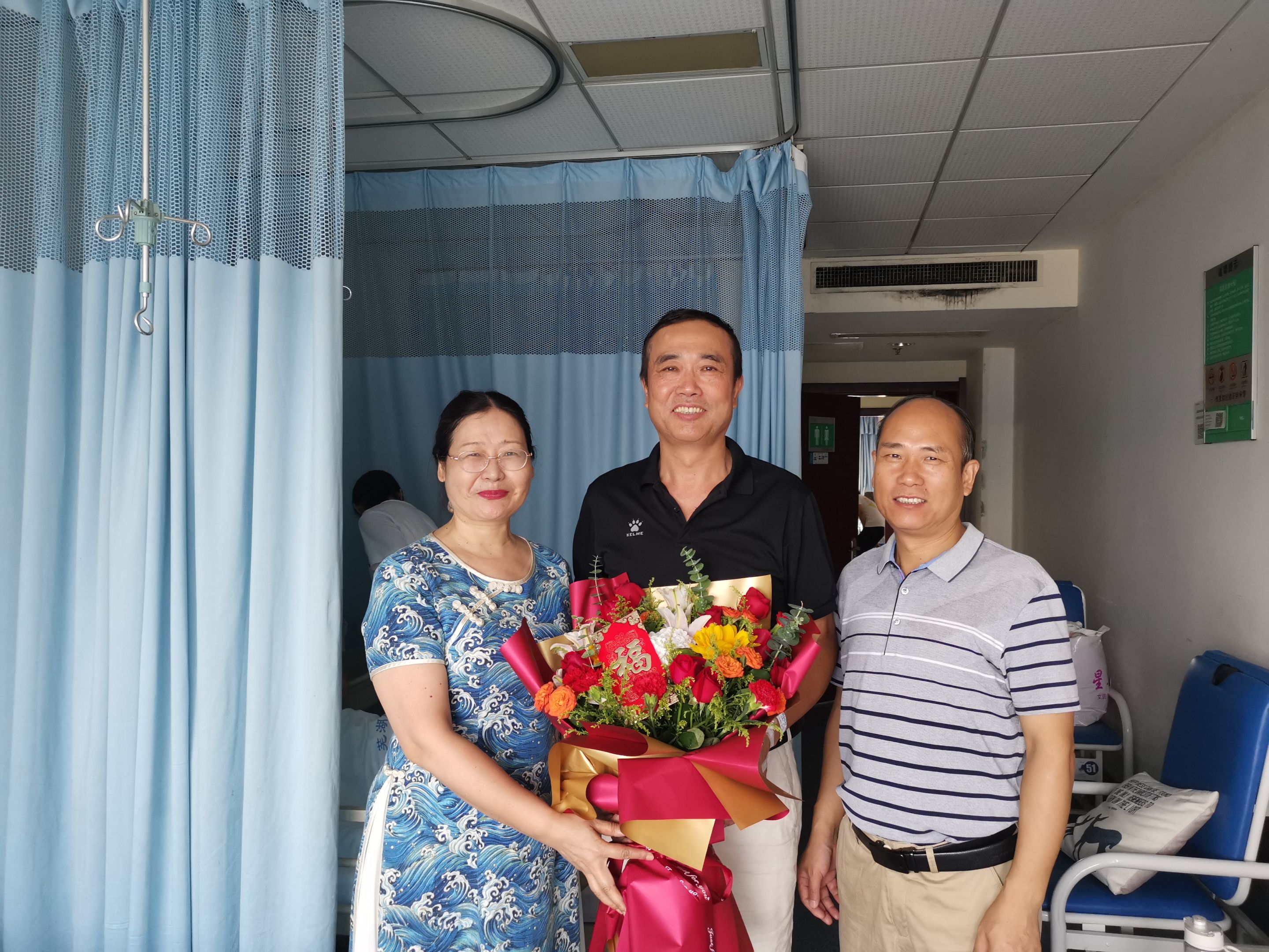 在医院,赵红和徐成文与退休教师周仁标教授细细交谈,关心询问他的生活和身体状况,感谢他对公司的辛勤付出和做出的贡献。并祝愿他和家人身体健康、阖家幸福。
