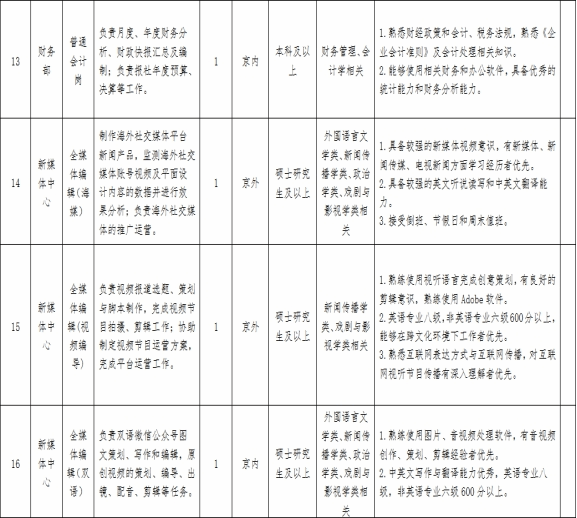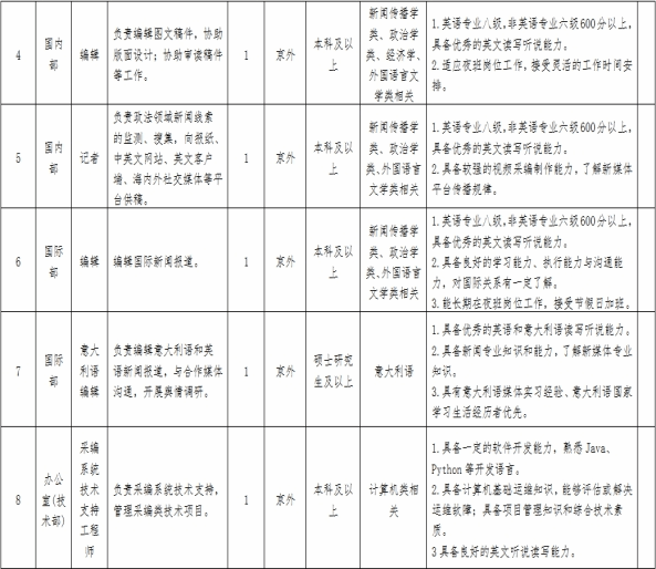 3.热爱党的新闻事业,恪守新闻工作者职业道德,热爱国际传播事业,具有良好的职业操守和团队合作精神。