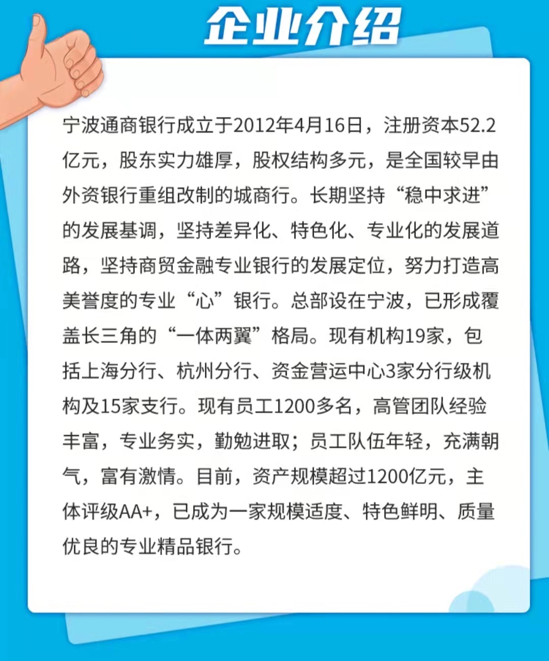 【综合性招聘】宁波通商银行2022年春季校园招聘