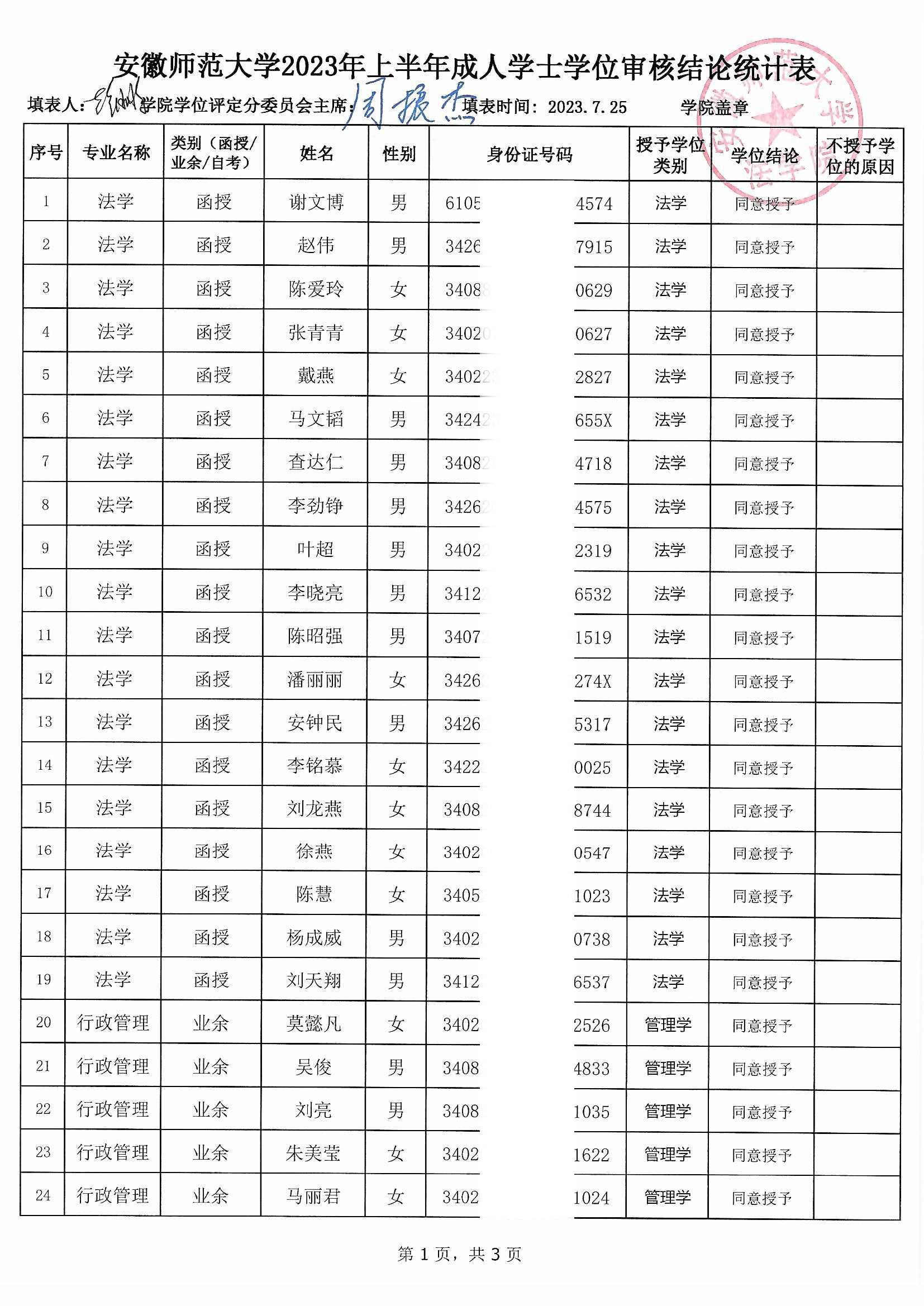 通过员工个人申请、公司审核,经院学位分委员会评审确定,现将评审结果予以公示(名单见附件)。