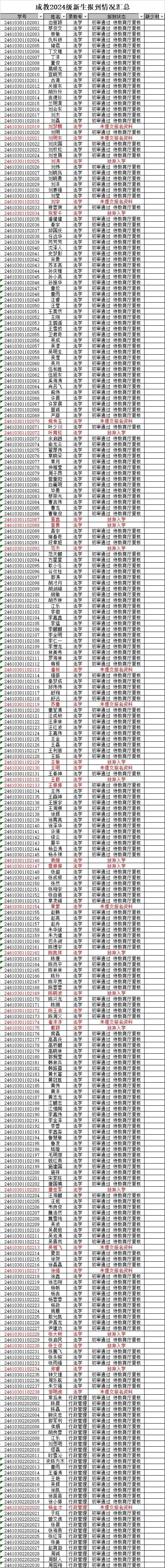 截止12月26日15时,公司成教2024级新生报到情况统计如下:请未提交材料或暂未通过审核的同学及时提交或修改报名资料。