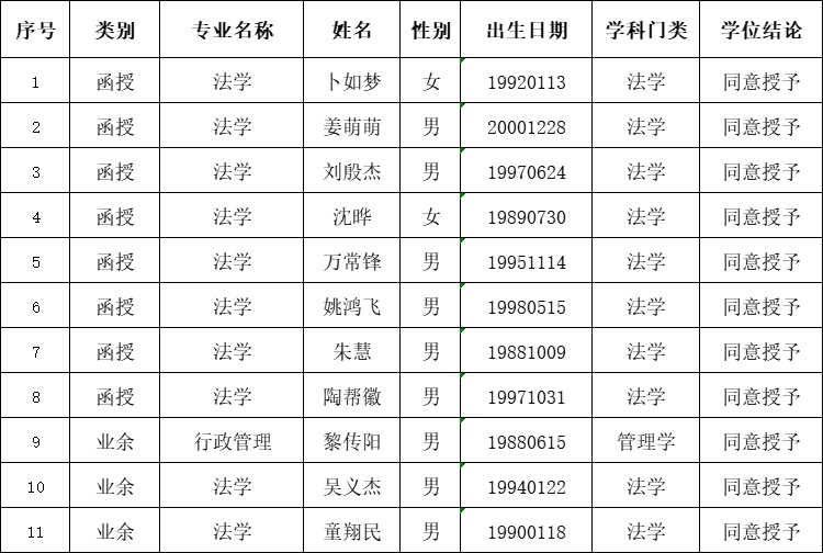 通过员工个人申请、公司审核,经院学位分委员会评审确定,现将评审结果予以公示(名单见附件)。